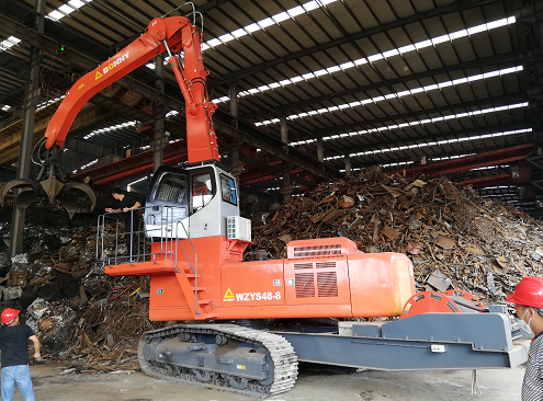 WZYS48-9雙動(dòng)力抓料機(jī)適用于鋼廠料場(chǎng)裝卸廢鋼、裝卸火車皮物料、港口碼頭裝卸物料,廢鋼等,具有以下特點(diǎn):