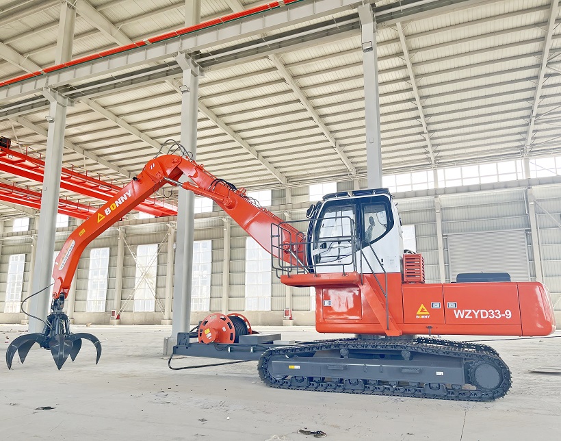 WZYD33-9電動型液壓抓鋼機(jī)適用于鋼廠料場裝卸廢鋼、裝卸火車皮物料、港口碼頭裝卸物料,廢鋼等,具有以下特點:
