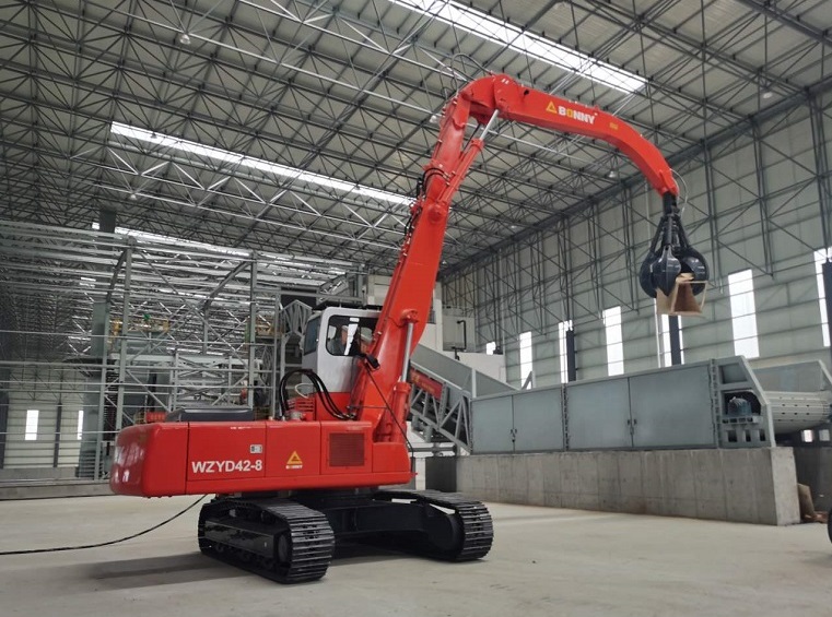 ●可以選擇配備多種工作裝置(抓斗)實現(xiàn)廢鋼、圓木、木屑、原煤、草料等多種物料的抓取、裝卸