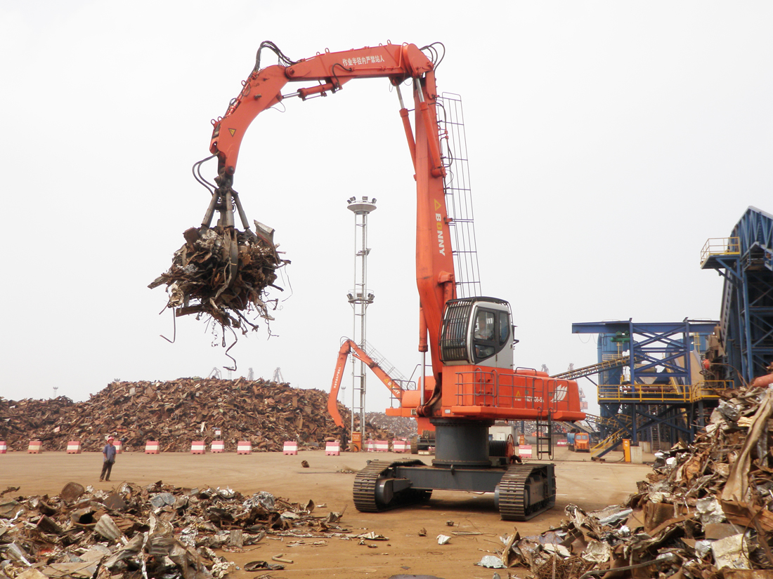 ●可以選擇配備多種工作裝置(抓斗)實現(xiàn)廢鋼、圓木、木屑、原煤、草料等多種物料的抓取、裝卸